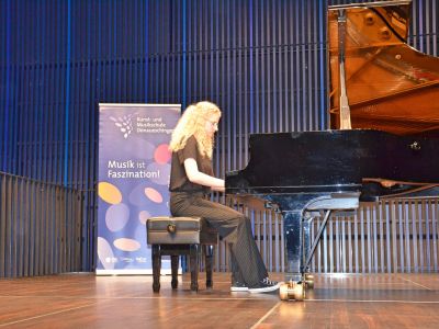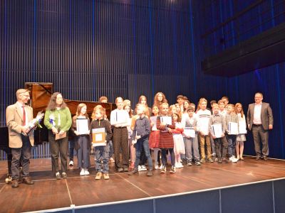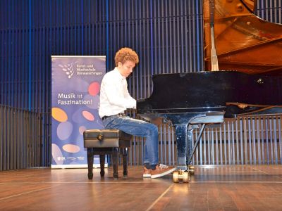 36 Teilnehmer nahmen diese Gelegenheit wahr und bereiteten ein abwechslungsreiches Programm vor. Von der Barockzeit über Gershwin bis hin zur Filmmusik aus Harry Potter wurde Klavierliteratur in großer Bandbreite aufgeführt. Vor einem erfreulich großen Publikum fand das Preisträgerkonzert im Strawinsky Saal statt. Die Darbietungen aus dem Wettbewerbsprogramm unterstrichen noch einmal eindrucksvoll die Leistungen der Schülerinnen und Schüler.