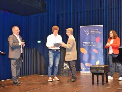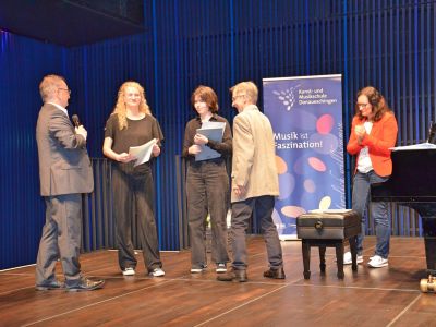 Schulleiter Clemens Berger betonte den pädagogischen Ansatz des Wettbewerbs. Er gratulierte allen Teilnehmerinnen und Teilnehmern herzlich und dankte den Schülerinnen und Schülern für ihren Mut und ihre Bereitschaft, sich dem Wettbewerb zu stellen. Ein besonderer Dank ging an den Organisator und Klavierlehrer Michael Kanczyk sowie an Eri Ogawa-Listmann, Beate Maier-Mußgnug, Isabela Stan und Janosch Spreter für die wochenlange und fundierte Vorbereitung der Schülerinnen und Schüler auf den Wettbewerb und das Konzert.