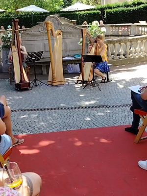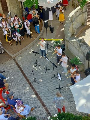 Das Trompetenensemble der Musikschule, Ltg. Leopold Reisenauer umrahmte die Eröffnung des Donauquellfests, Harfenschülerinnen von Anaela Schlunk unterhielten kurzweilig solistisch oder im Duett an der Donauquelle und die Pop-Band, Ltg. Thomas Schmeer war mit fetzigen Pop-Songs auf der Bühne „Piazza“ vertreten.