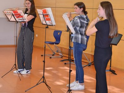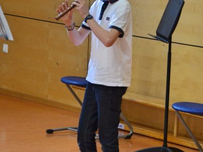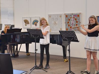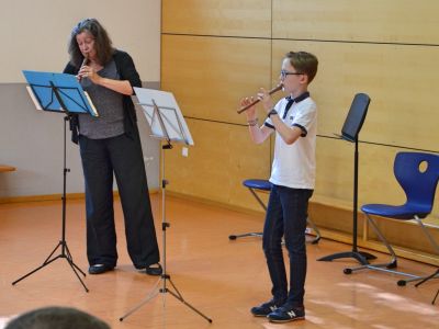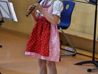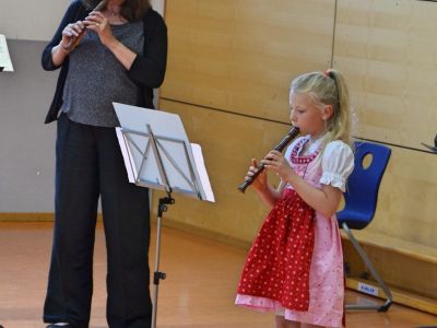 Ein Querflötentrio mit Nora Gilly, Sophia Liebert und Chiara Steiner waren erstmals als Ensemble u.a. mit einem Czardas zu hören und überzeugten mit gut aufeinander abgestimmtem Spiel. Mit „Memory“ aus dem erfolgreichen Musical Cats sorgte Lou Awe mit ihrer Stimme für einen ganz besonderen Moment, gelang es ihr doch, das Lied emotional und musikalisch absolut überzeugend zu interpretieren. Für die Klavierbegleitung sorgte ihre Lehrerin, Frau Beate Maier-Mußgnug.