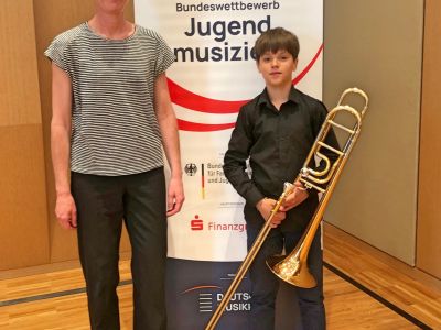 Jakob Armbruster aus der Posaunenklasse von Peter Stelzl durfte nach seinen 1. Preisen im Regionalwettbewerb in Schramberg und dem Landeswettbewerb in Offenburg in die Hansestadt reisen und sich in der Kategorie Posaune Solo der Jurywertung stellen. In der Altersklasse III spielten die besten 16 Schüler/innen aus dem gesamten Bundesgebiet.