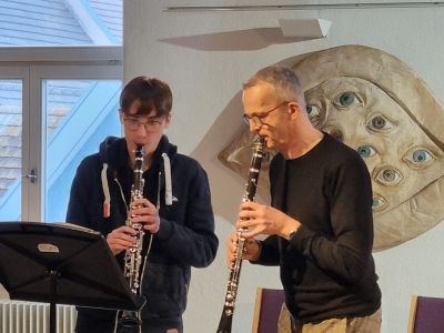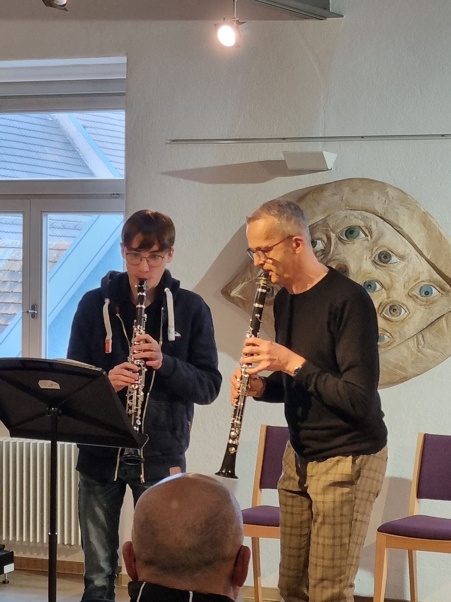 Matthias Stempfle und Elise Schelling, begleitet von ihrem Lehrer Herbert Bayer, zeigten die vielseitigen Einsatzmöglichkeiten der Klarinette – mal klassisch, mal im Stil der Popmusik.