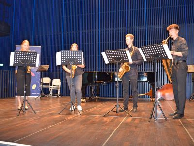 Das Saxophonensemble unter Leitung von Iris Gojowczyk präsentierte sich letztmals mit Karen Street´s Tango und wurden von Schulleiter Clemens Berger mit Urkunden für besondere musikalische Leistungen verabschiedet, da aufgrund Ausbildung und Studium ein weiteres Zusammenspiel nicht mehr möglich ist.