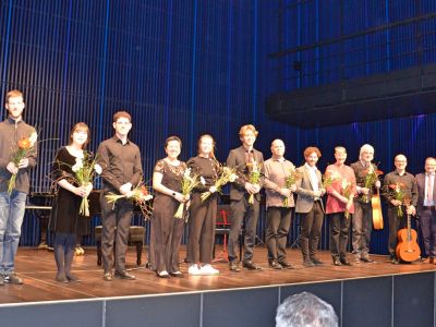 Die Musikauswahl war anspruchsvoll, dennoch sehr abwechslungsreich, und alle Kompositionen wurden mit Perfektion und großer Freude an der Musik zu Gehör gebracht. Aus den Reihen des Kollegiums haben musiziert: Sophia Freudenthaler (Querflöte), Janosch Spreter (Klavier), Karen Gómez (Violine), als Gast Mykola Myroshnichenko (Klavier), Sofia Torgal (Oboe), Alejandro Rozas (Fagott), als Gast Seunghee Yoon (Klavier), Astrid und Axel Schlumberger (Akkordeon), Josep Mas Mestre (Sopransaxophon), Hans Peter Wößner und als Gast Patrick Poebel (beide Gitarre).