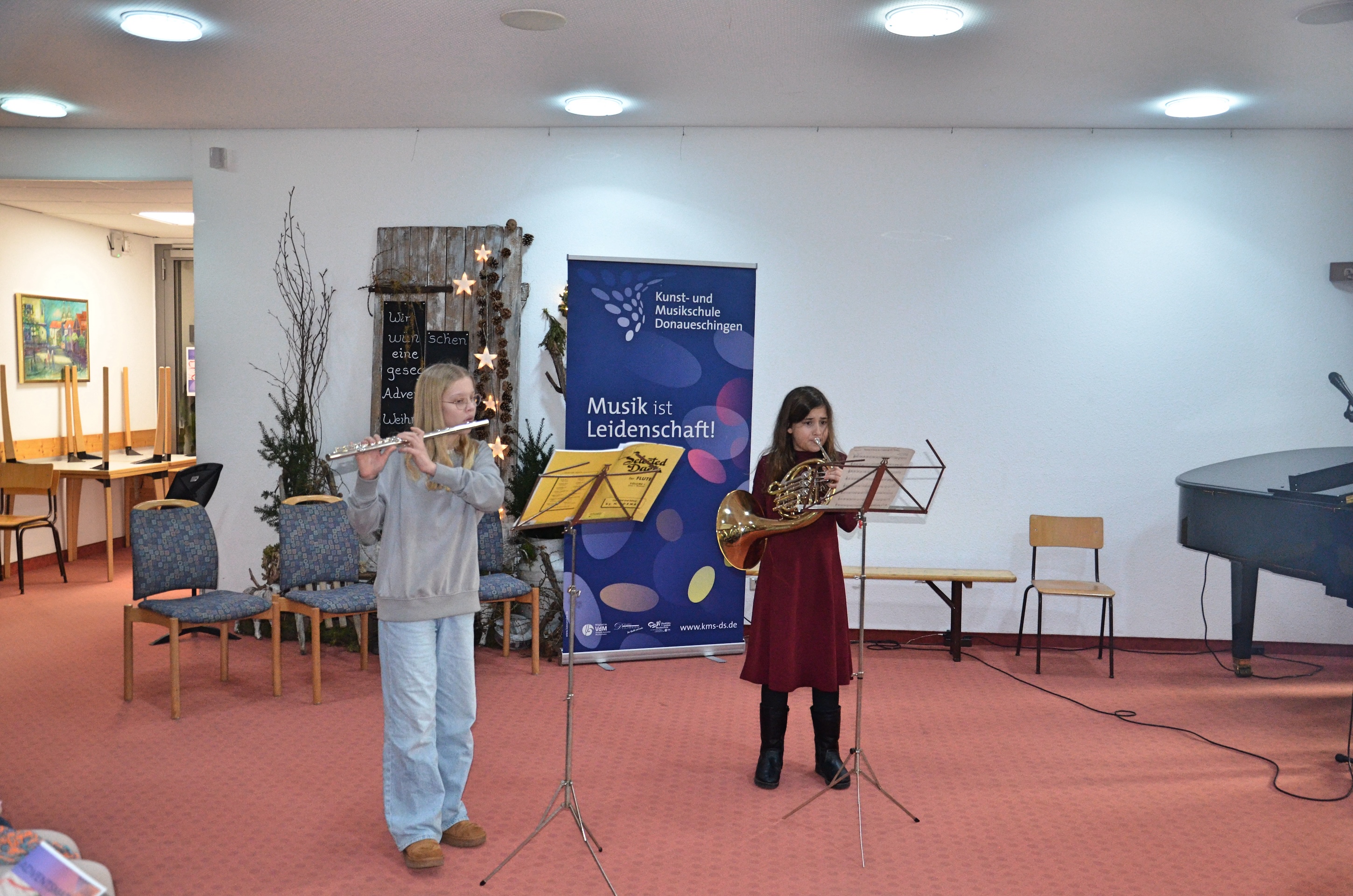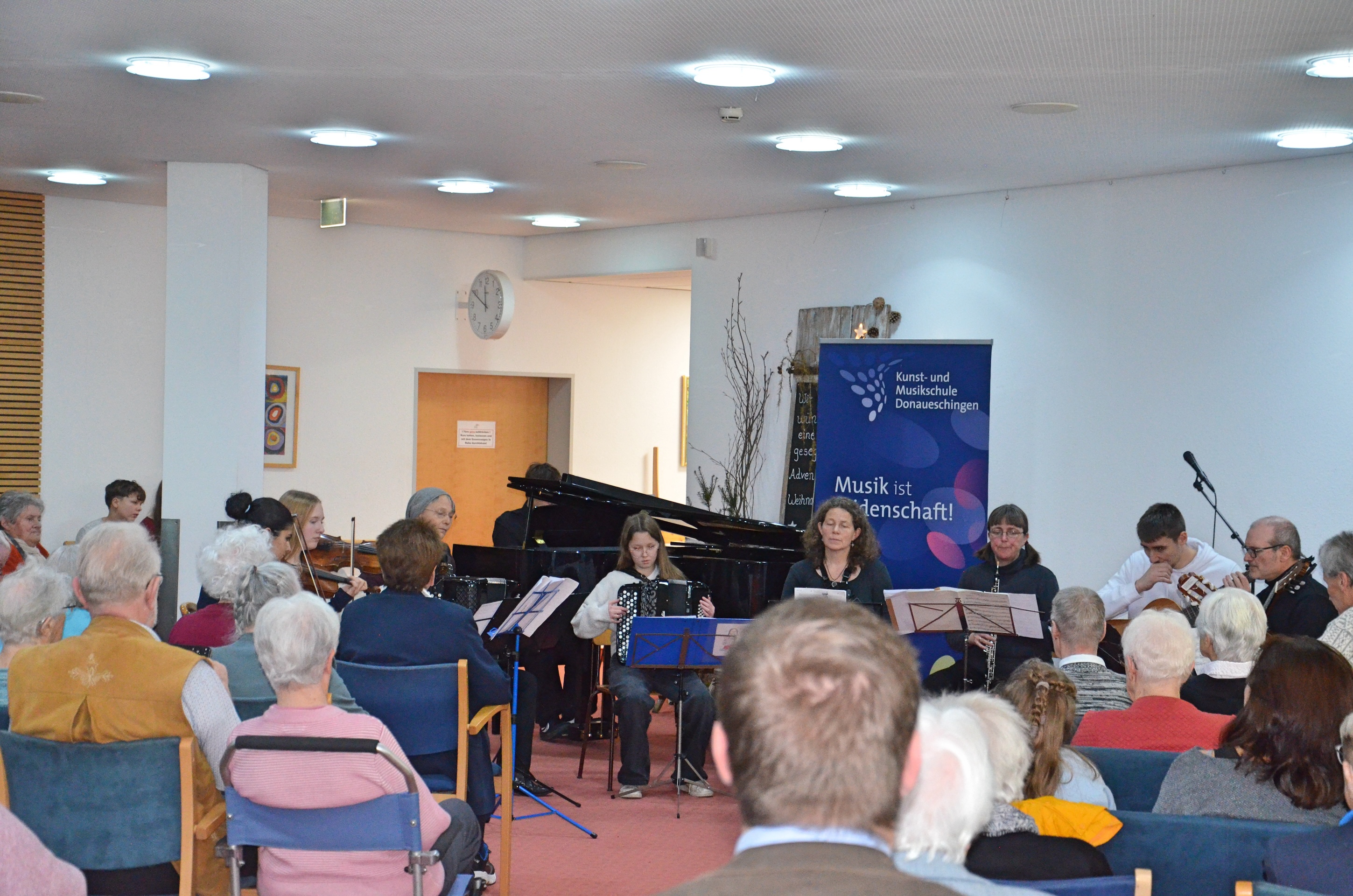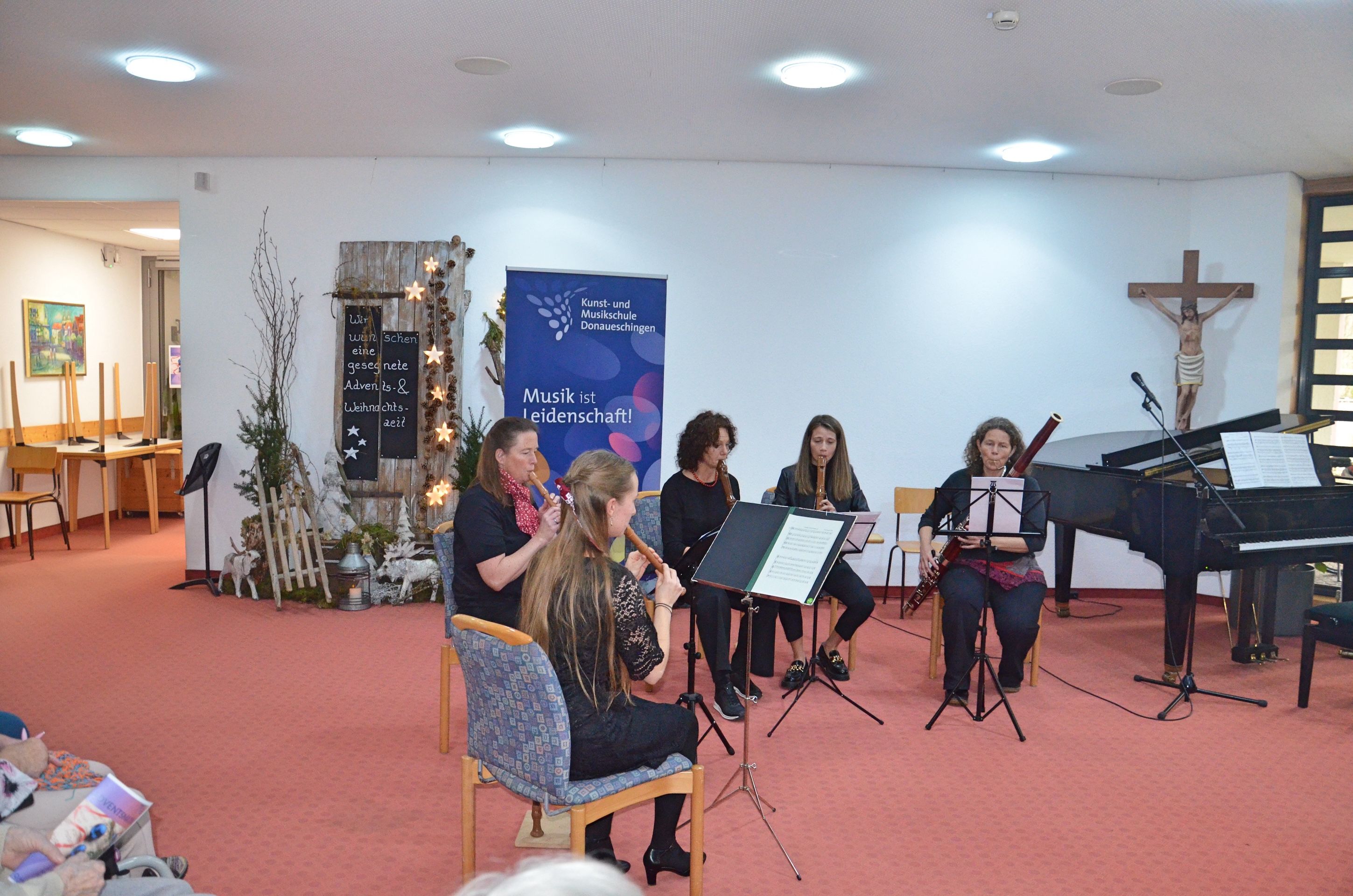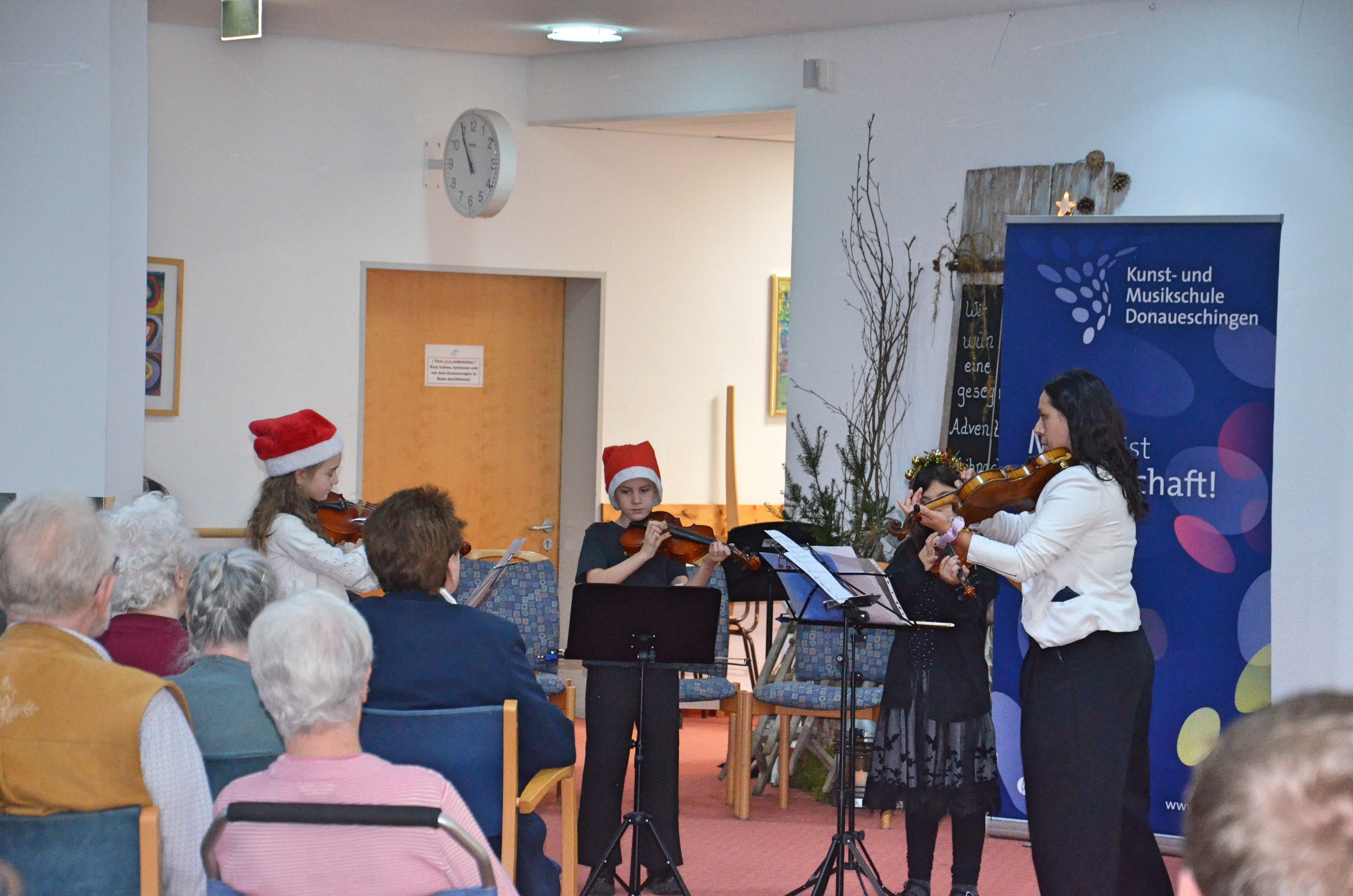 Die Musikschule Donaueschingen setzte ihre langjährige Tradition fort und veranstaltete am 2. Advent eine stimmungsvolle musikalische Matinee im voll besetzten Foyer des Altenheims Sankt Michael.