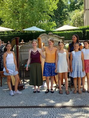 Das Trompetenensemble der Musikschule, Ltg. Leopold Reisenauer umrahmte die Eröffnung des Donauquellfests, Harfenschülerinnen von Anaela Schlunk unterhielten kurzweilig solistisch oder im Duett an der Donauquelle und die Pop-Band, Ltg. Thomas Schmeer war mit fetzigen Pop-Songs auf der Bühne „Piazza“ vertreten.