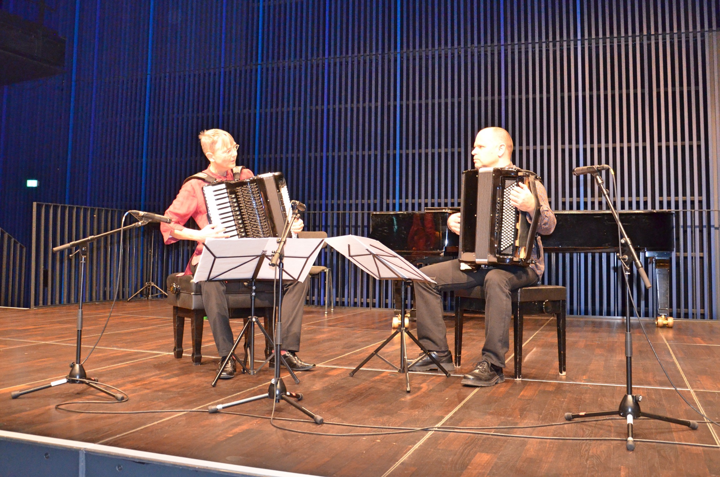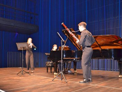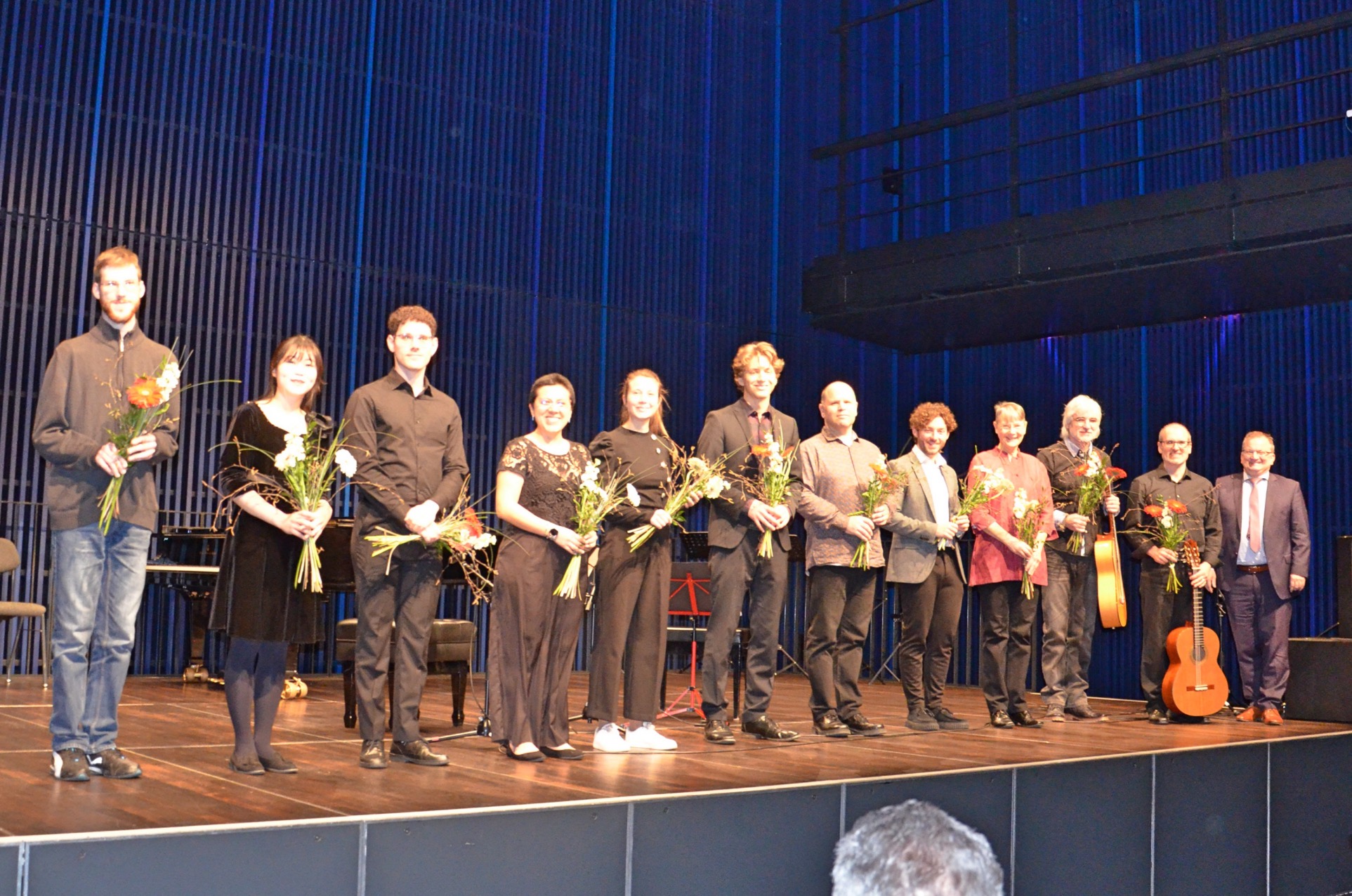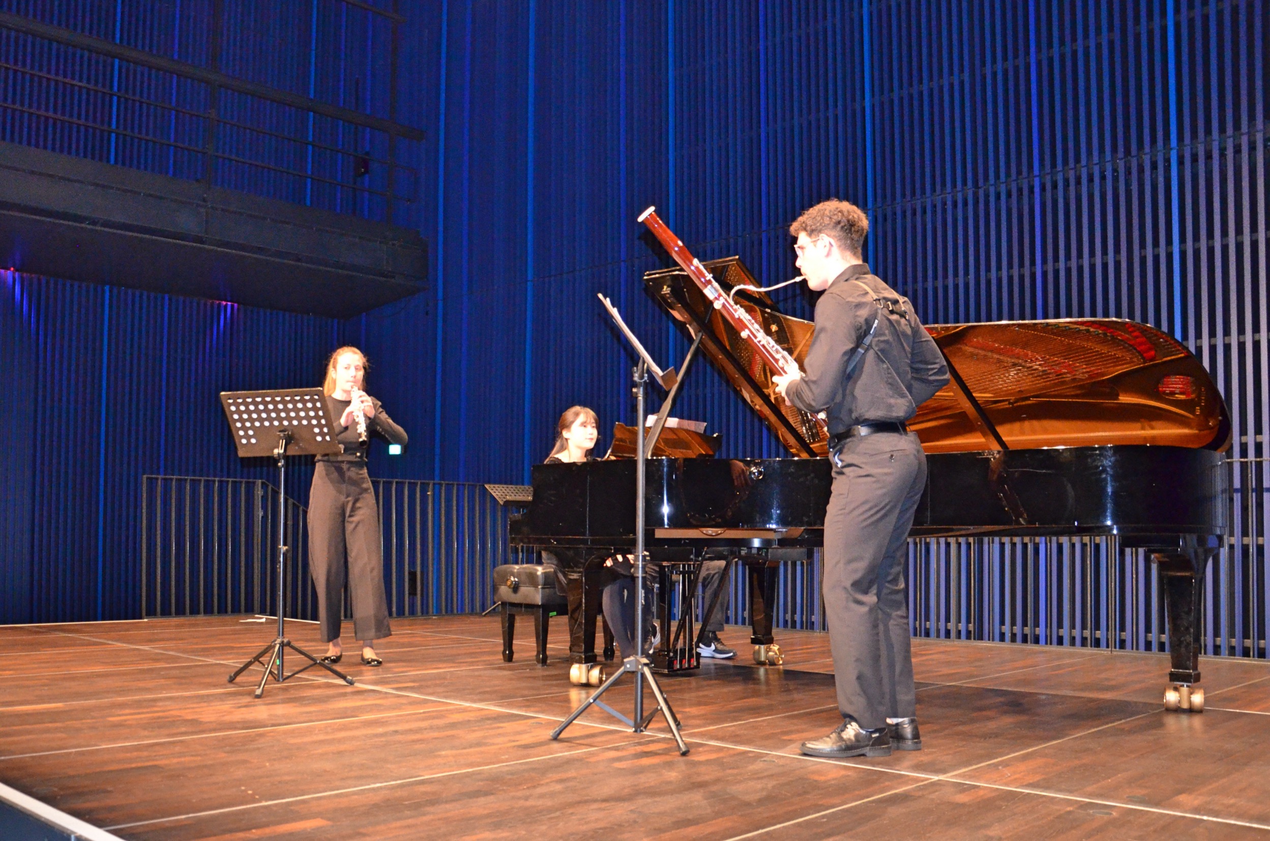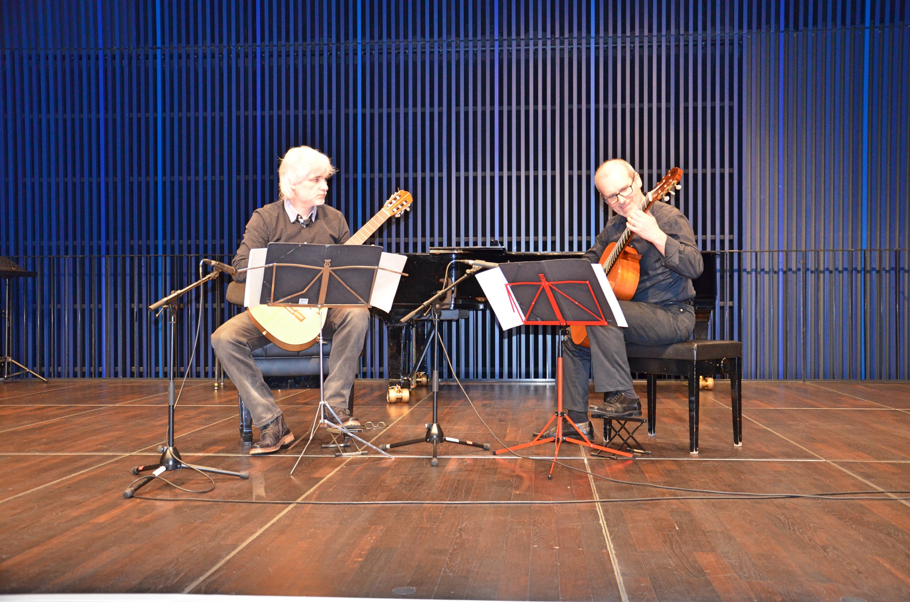 Die Musikauswahl war anspruchsvoll, dennoch sehr abwechslungsreich, und alle Kompositionen wurden mit Perfektion und großer Freude an der Musik zu Gehör gebracht. Aus den Reihen des Kollegiums haben musiziert: Sophia Freudenthaler (Querflöte), Janosch Spreter (Klavier), Karen Gómez (Violine), als Gast Mykola Myroshnichenko (Klavier), Sofia Torgal (Oboe), Alejandro Rozas (Fagott), als Gast Seunghee Yoon (Klavier), Astrid und Axel Schlumberger (Akkordeon), Josep Mas Mestre (Sopransaxophon), Hans Peter Wößner und als Gast Patrick Poebel (beide Gitarre).