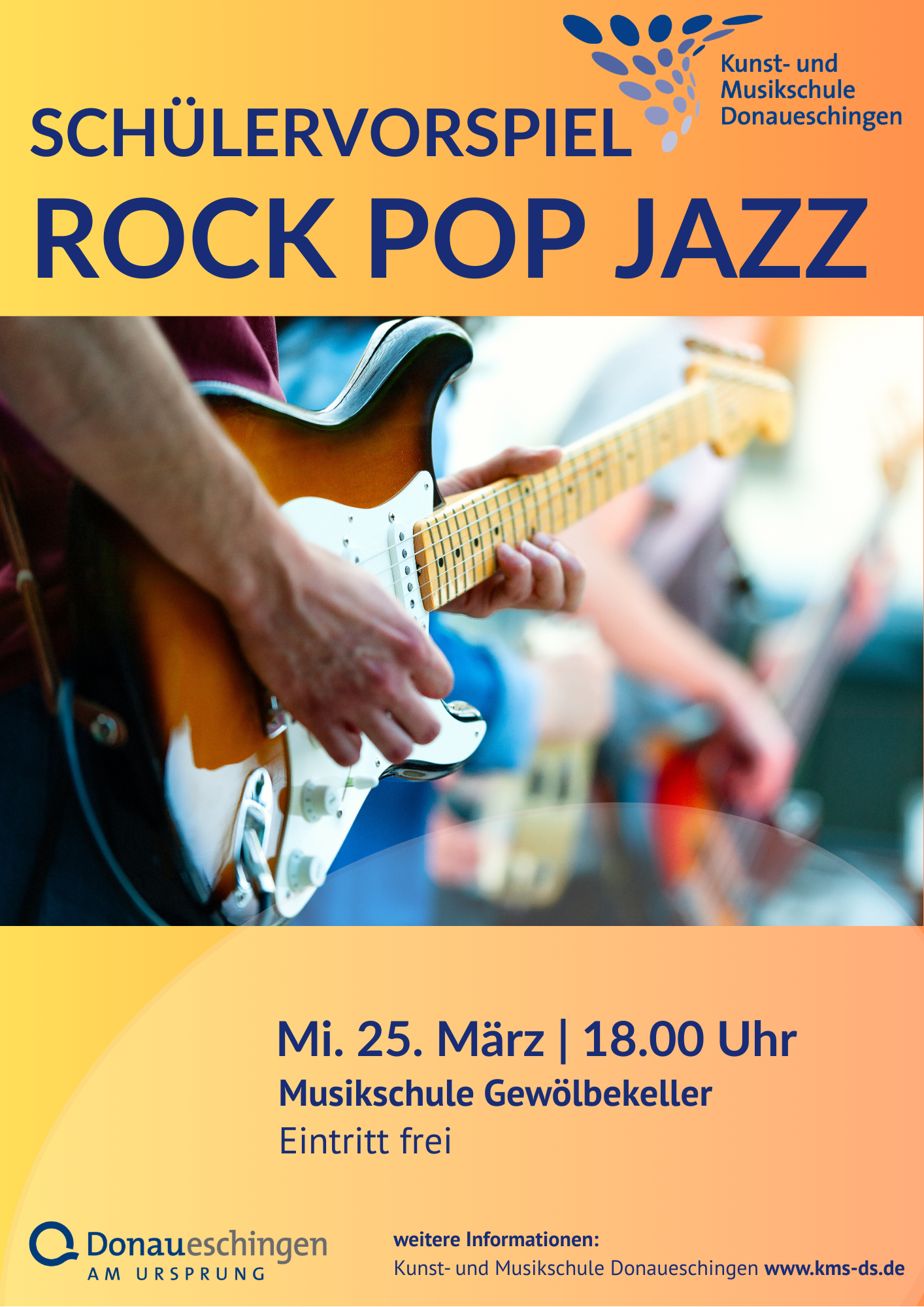 Lust auf Live-Musik? Am 25. März laden wir euch herzlich um 18 Uhr zu unserem Fachbereichsvorspiel in den Gewölbekeller der Musikschule ein. Freut euch auf eine bunte Mischung aus Rock, Pop und Jazz, präsentiert von den Instrumental-Talenten unserer Musikschule. Auch unsere Schulband ist mit am Start und sorgt für gute Stimmung. Der Eintritt ist frei!