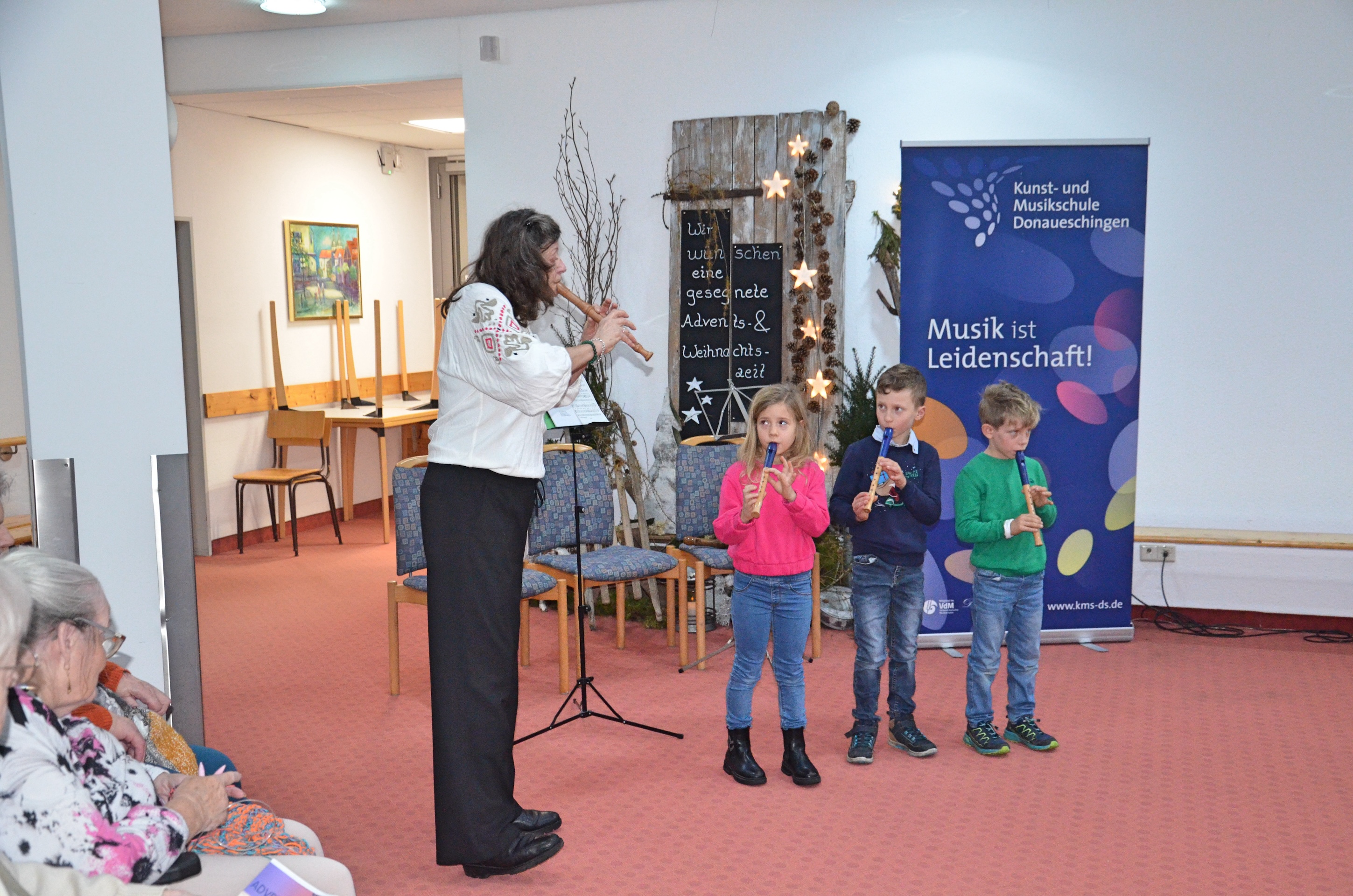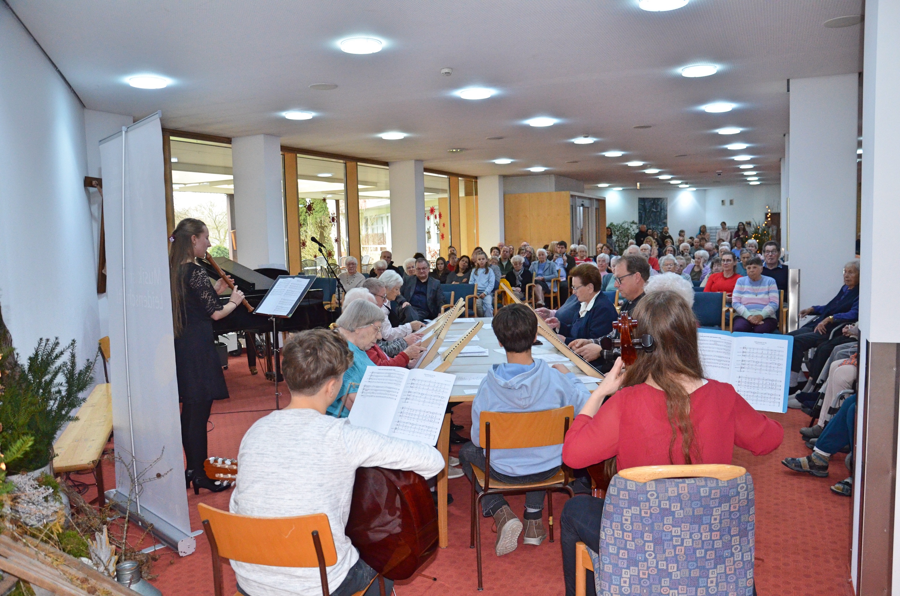 Die Musikschule Donaueschingen setzte ihre langjährige Tradition fort und veranstaltete am 2. Advent eine stimmungsvolle musikalische Matinee im voll besetzten Foyer des Altenheims Sankt Michael.